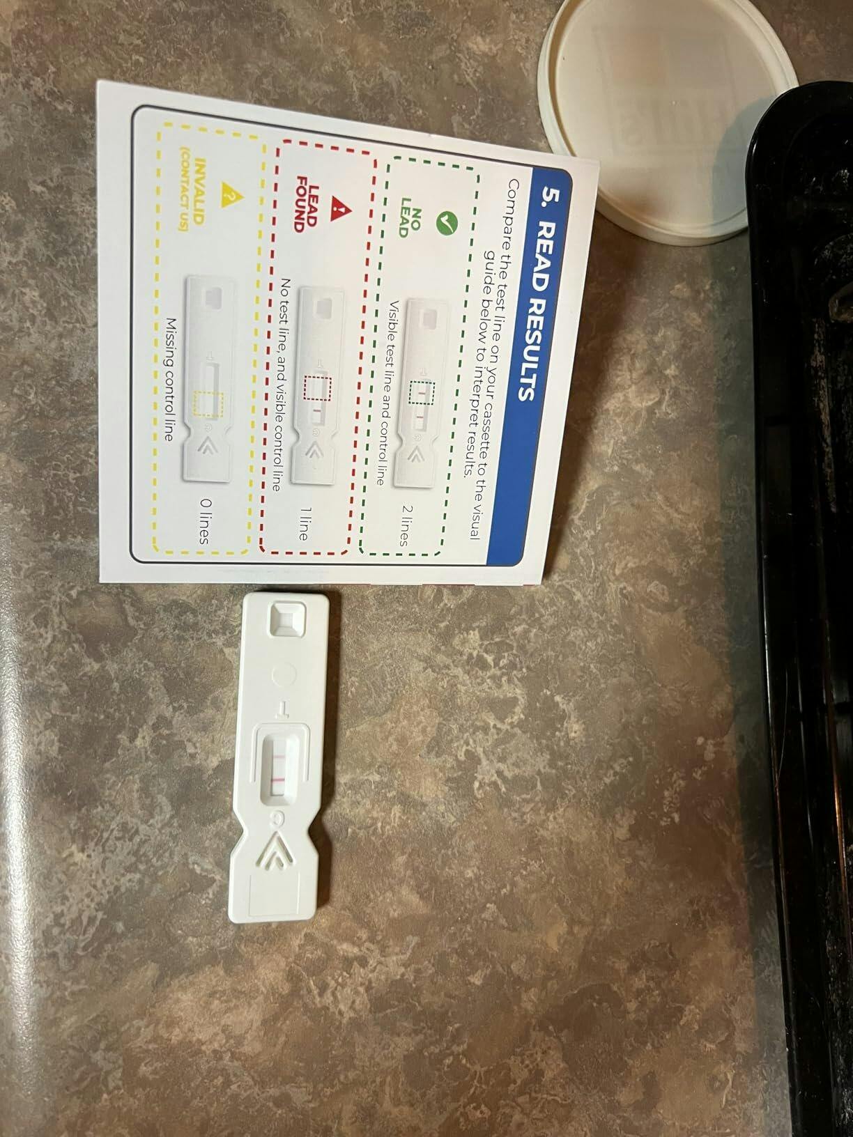 Start by collecting a sample directly from the tap. Use the included ultra-sensitive test strip to screen for lead in water —after 5 minutes, you’ll see easy-to-read color changes that correspond to contamination level.