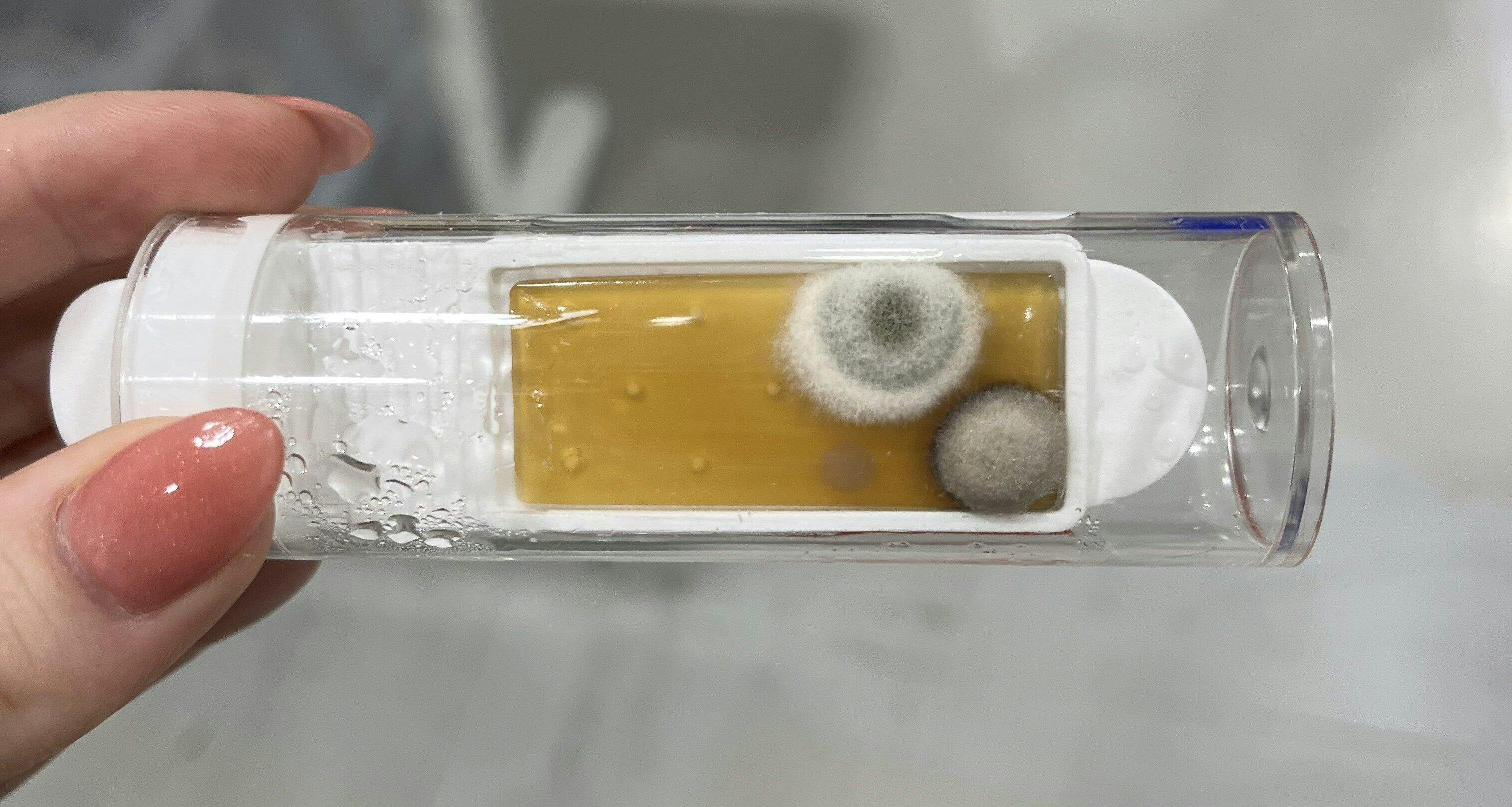Check the effectiveness of your cleaning routine or products on key surfaces like fridge handles, cutting boards, doorknobs, and more. Mold in your fridge water track – test the water too!