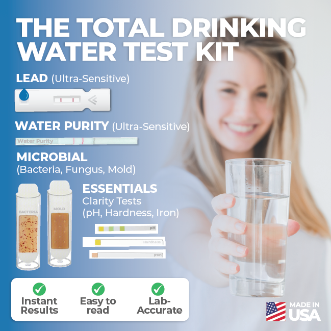 With this kit, you can check your drinking water for a wide range of common contaminants in one convenient package. It tests for lead, bacteria, mold, and key water chemistry metrics including pH, hardness, and iron. Whether you're using municipal tap water or a private well, this kit gives you a comprehensive snapshot of water safety within minutes.
